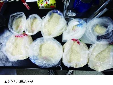 記者在小攤上購(gòu)買了7份東北“新米”,連同檢測(cè)人員自家食用的兩份“新米”,起進(jìn)行業(yè)檢測(cè)。