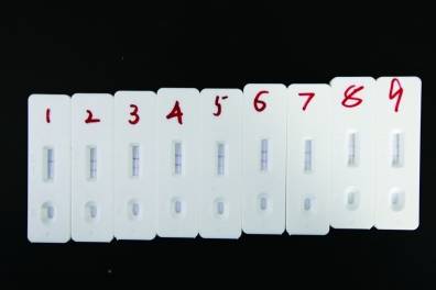 9個(gè)樣品檢測(cè)黃曲霉毒素B1,均呈陰性(出現(xiàn)兩條紅線),證明部符合標(biāo)限量標(biāo)準(zhǔn)